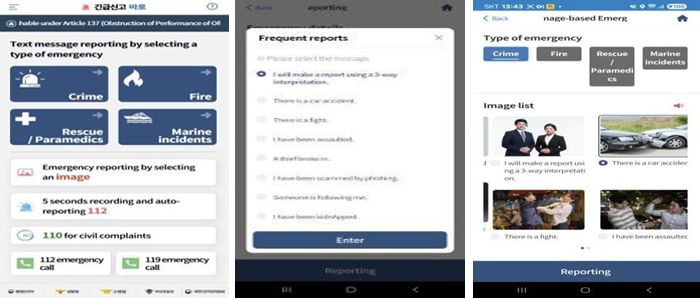 Wenn es um die Bedrohung von Leben und Eigentum geht, solltet ihr sofort die Notrufnummer 112 (Polizei) oder 119 (Feuerwehr und Notfalldienst) anrufen. Macht euch keine Sorge, falls ihr kein oder nicht genügend Koreanisch sprecht: sagt einfach „English please“ oder „Interpreter please“, und es wird eine zusätzliche Verbindung mit professionellen Dolmetschern hergestellt. Ermittelt am besten euren derzeitigen Standort mithilfe großer Gebäude in der Umgebung oder der GPS-Funktion eures Handys, damit euch noch schneller geholfen werden kann. Die „Baro Emergency Reporting „App“ ist in verschiedenen Fremdsprachen (Englisch, Japanisch, Chinesisch, Vietnamesisch und Filipino) verfügbar, und ihr könnt Notfälle ganz einfach entweder per Nachricht oder per Bild melden.