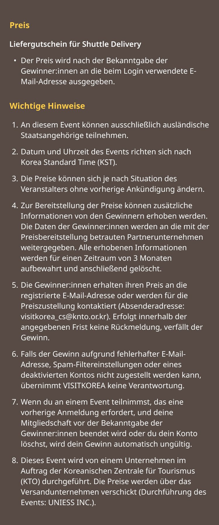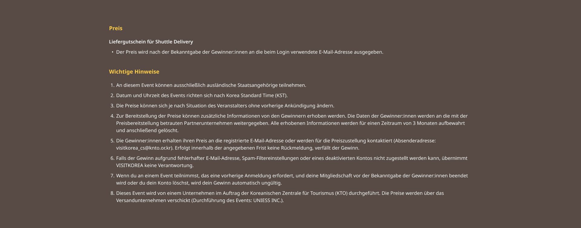 Die Arten von Cookies, die VISITKOREA sammelt, und ihre Zwecke sind wie folgt: